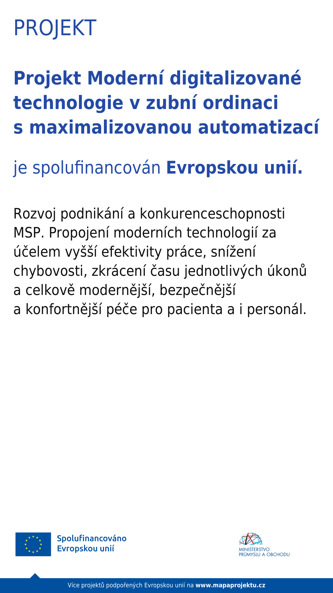 Ordinace je zapojena do projektu spolufinancovaného Evropskou unií.